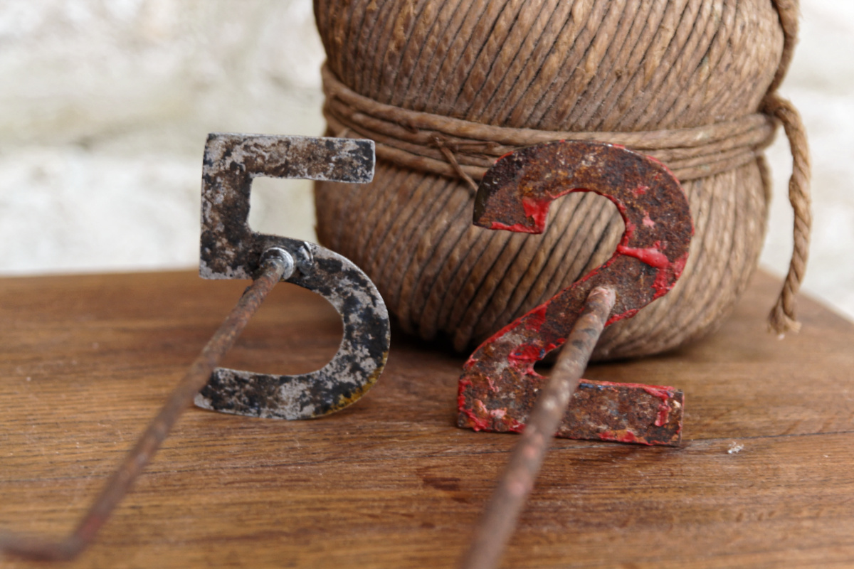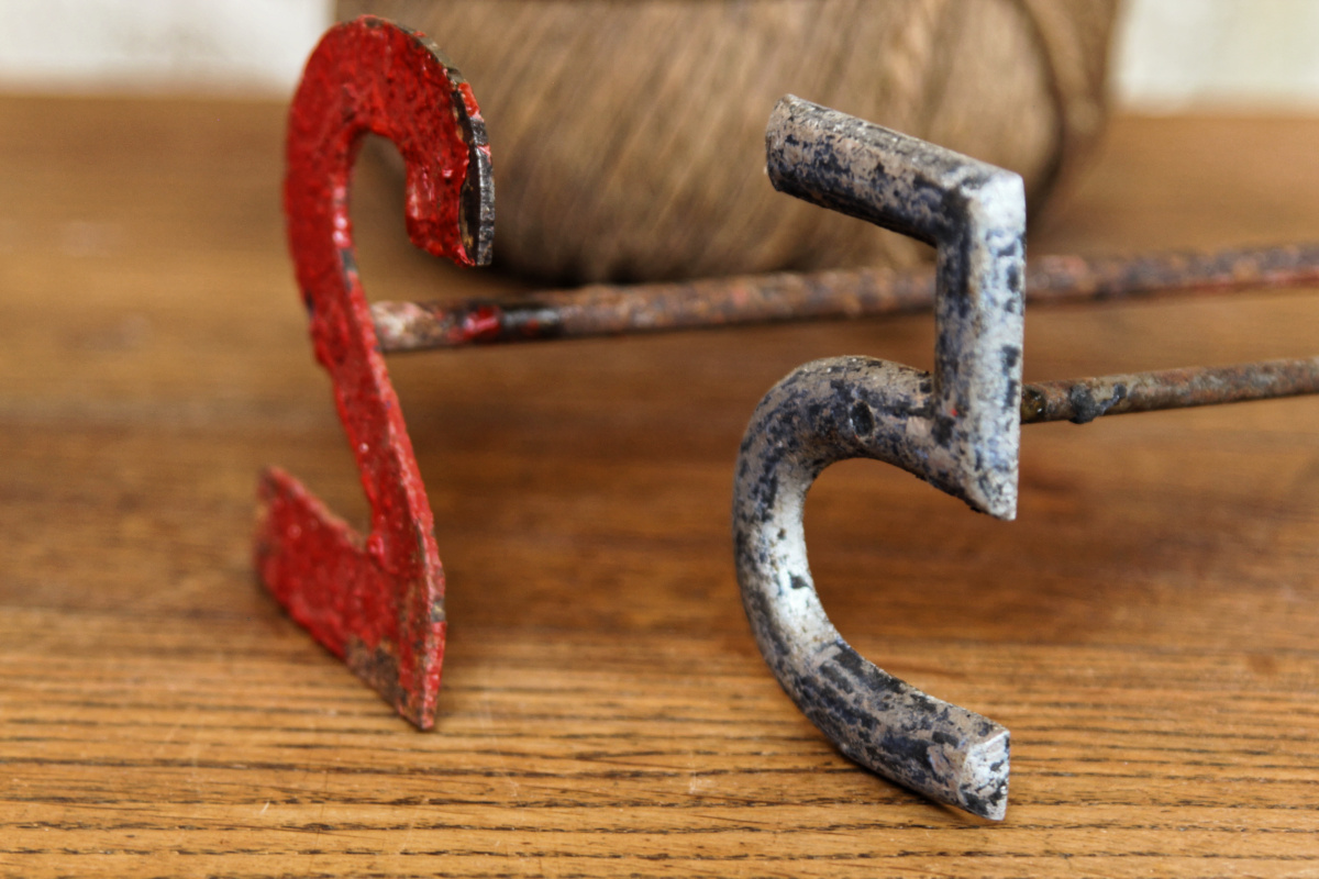 Vraisemblablement pour le marquage du bétail, peinture rouge et bleue