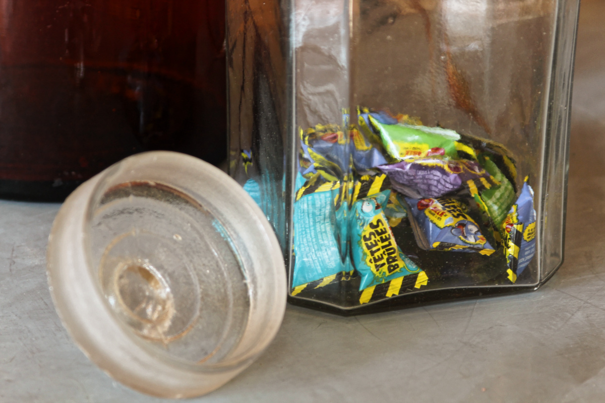 Bocal en bon état général (quelques usures au niveau du couvercle), marquage PG fatiguée