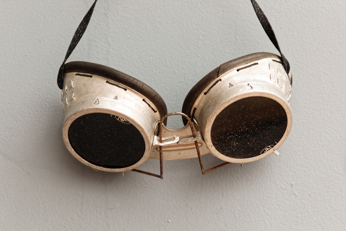 Pour un look Steampunk, une allure décalée, une éclipse de soleil... cette superbe paire de lunettes en aluminium, protégera vos jolies pupilles et vous assurera un look inédit ! Bon état général, quelques projections de soudure sur les vitres.