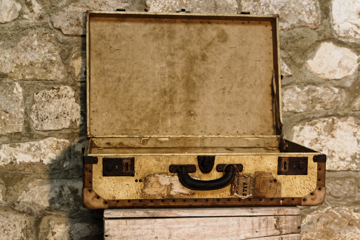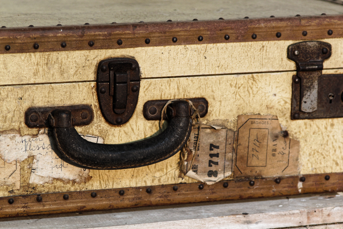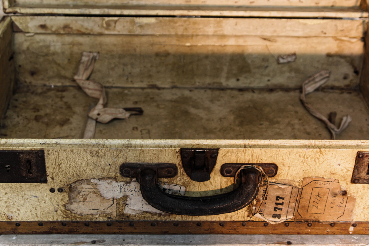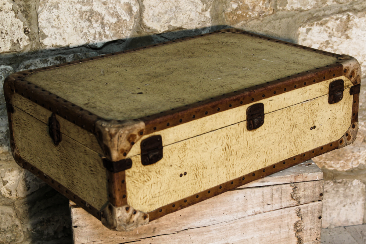 Ancienne valise en parchemin, cuir, années 30