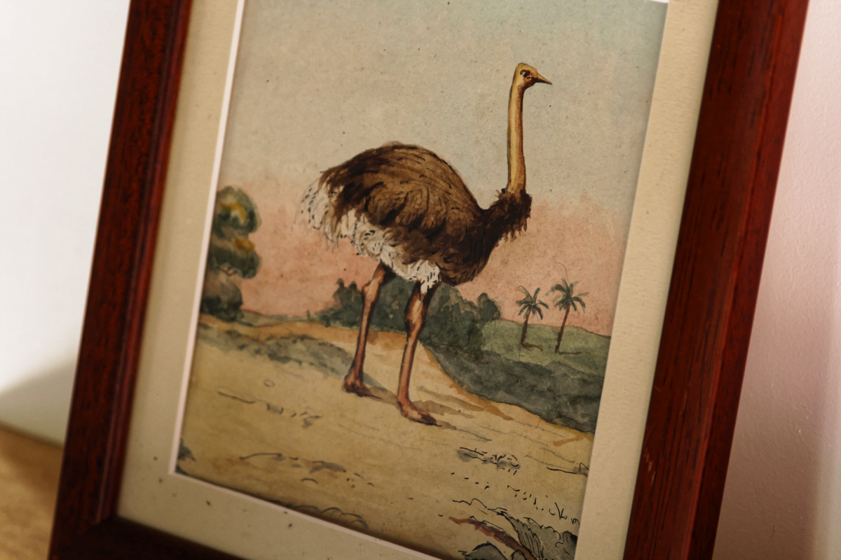 Aquarelle représentant une autruche – début XXème
