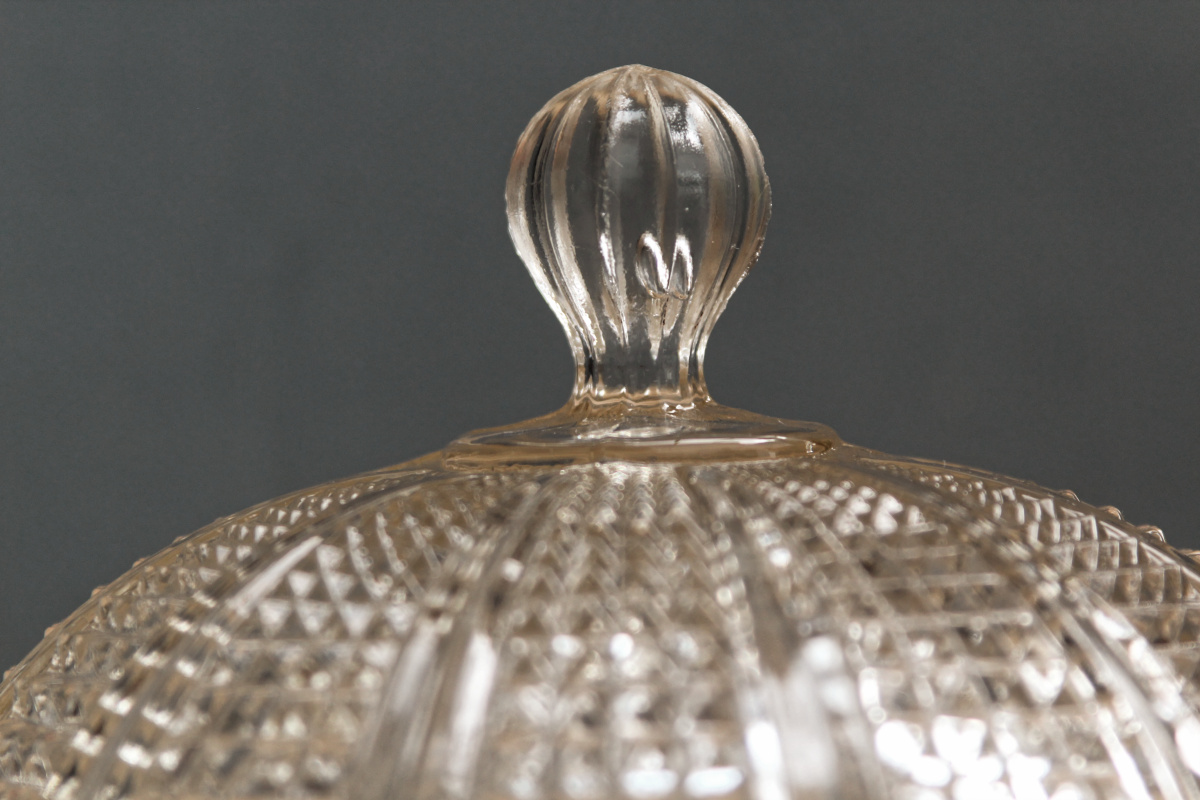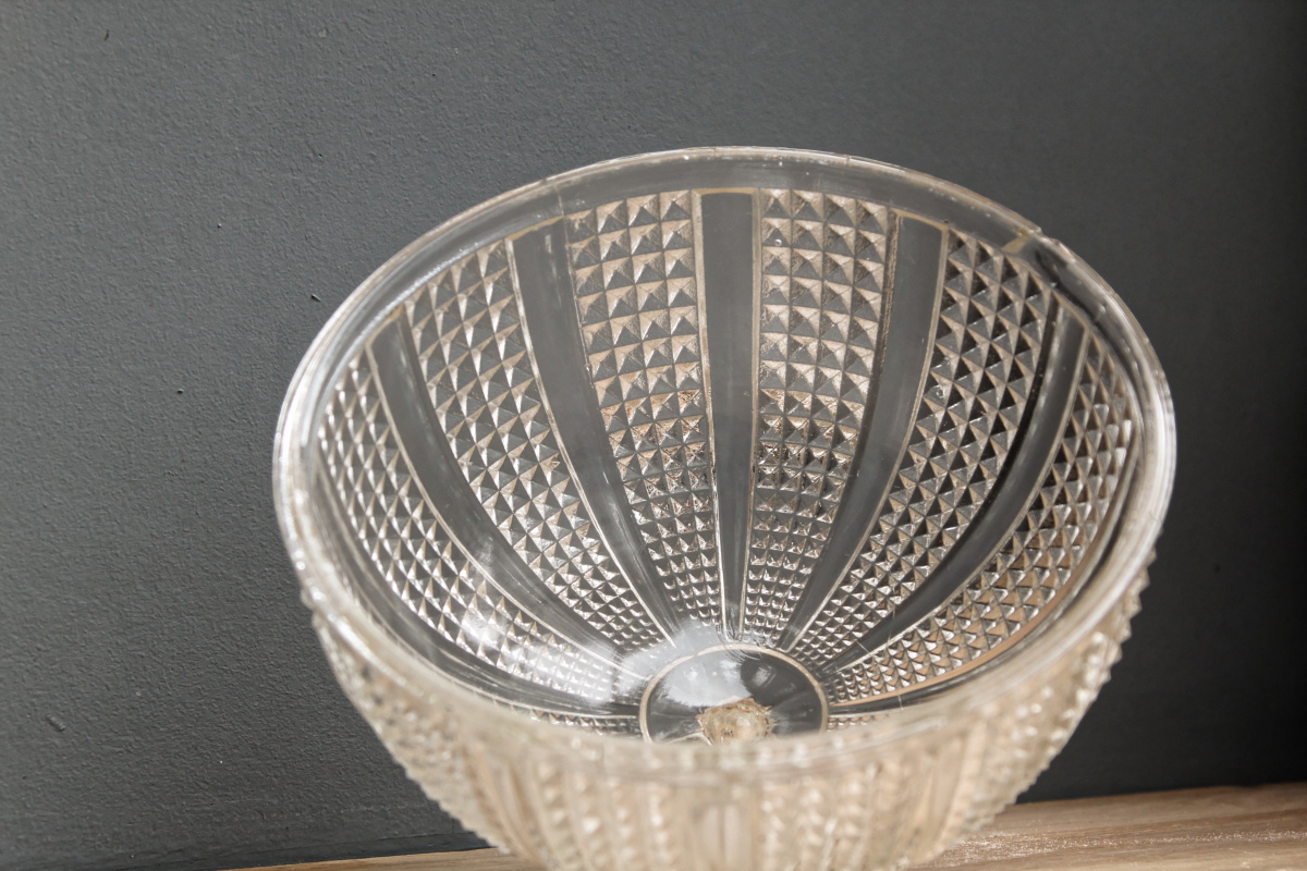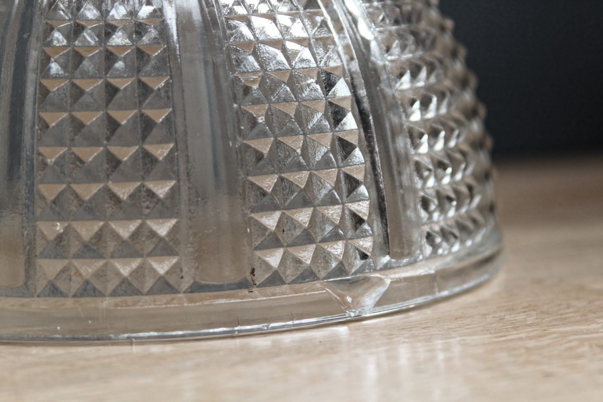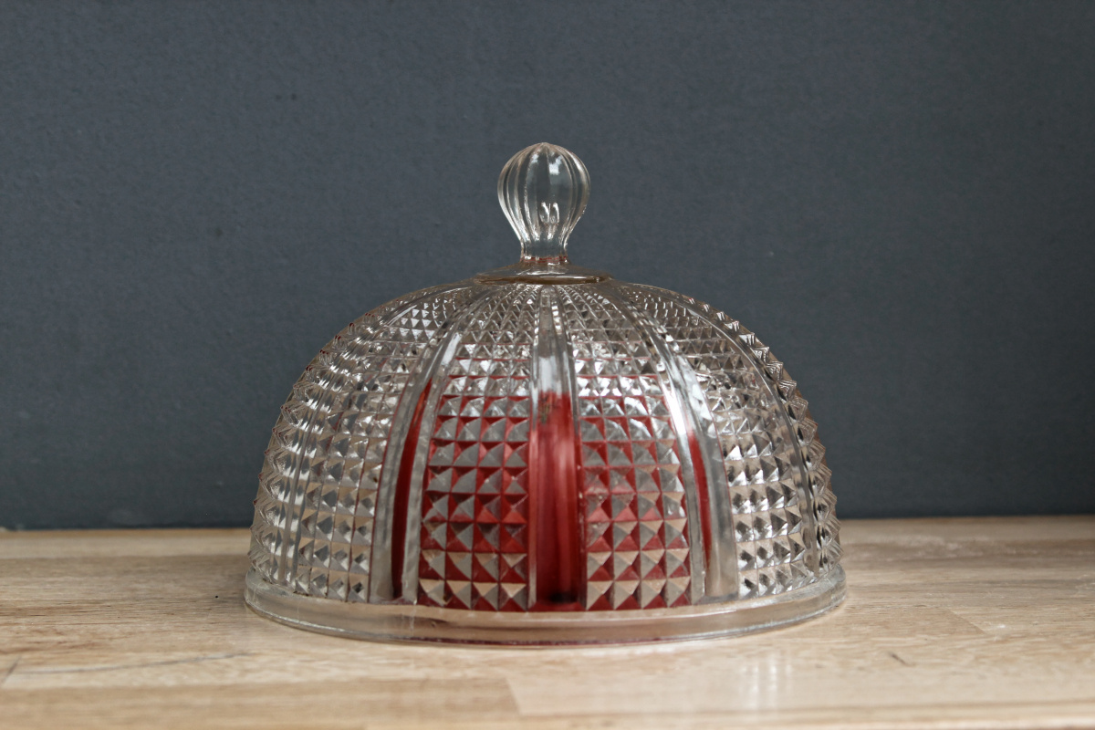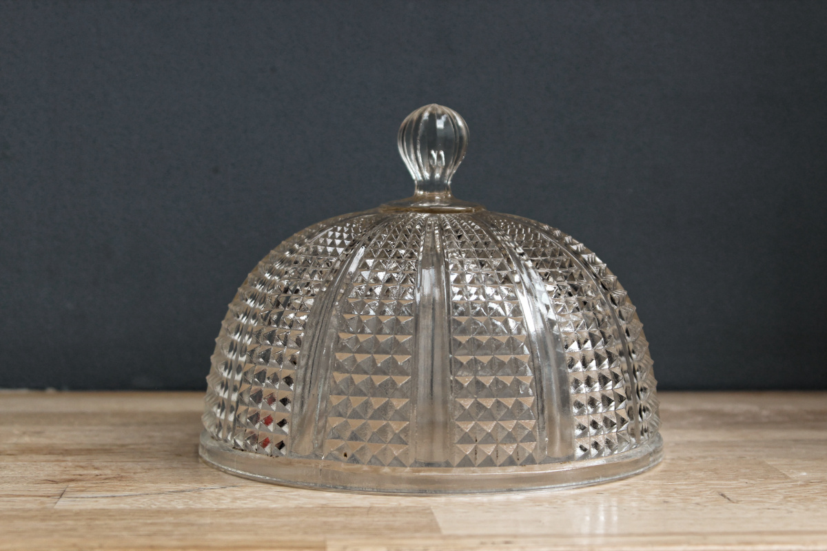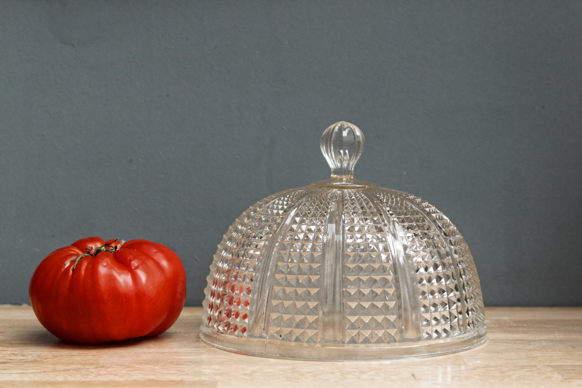 Une belle cloche à pointes de diamants pour protéger un bon camembert coulant, une assiette de mignardises ou une tomate bien mûre ! Bon état général excepté un petit éclat sans incidence (visible sur les photos).