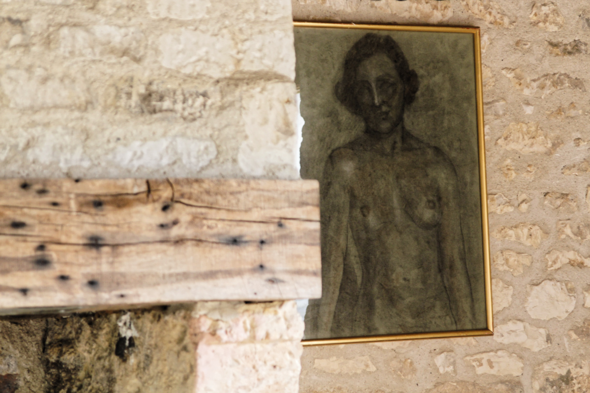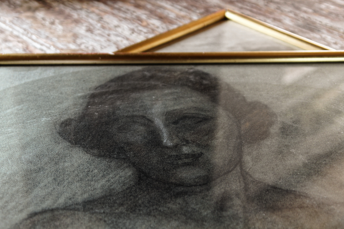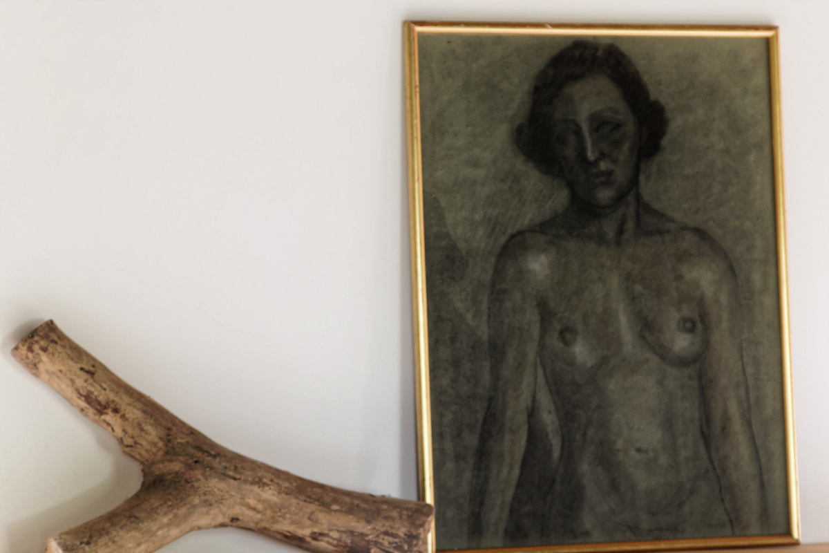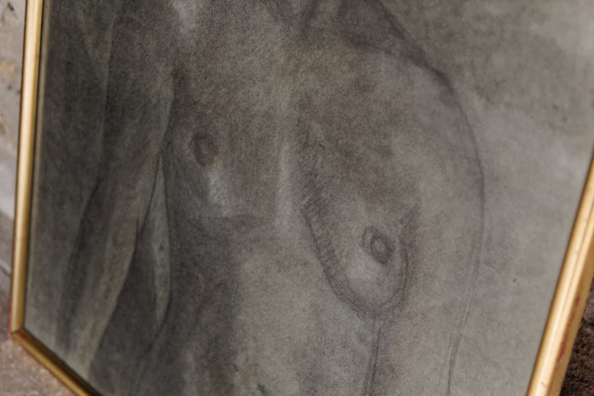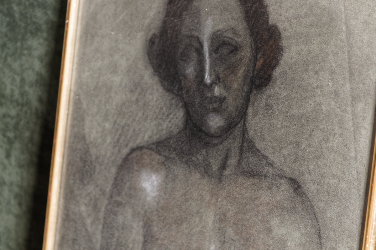 Dessin femme nue en buste, au fusain années 40, non signé
