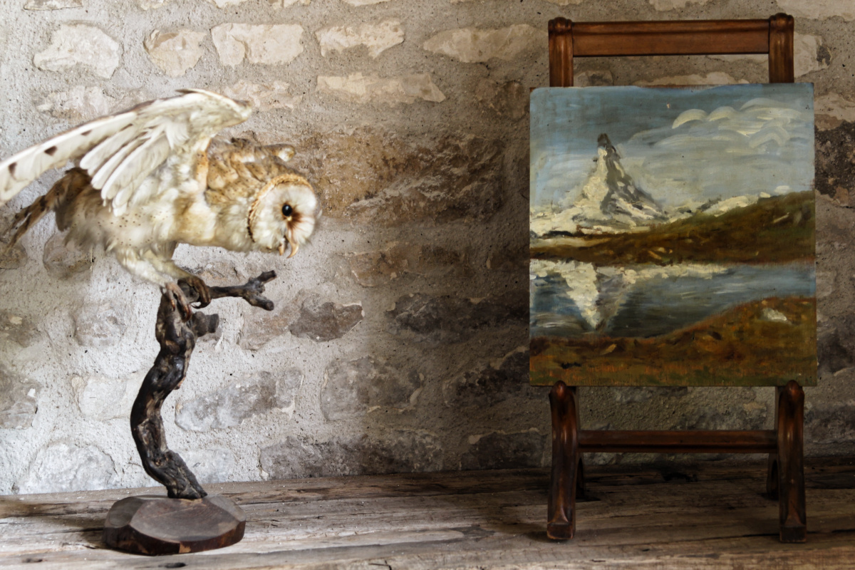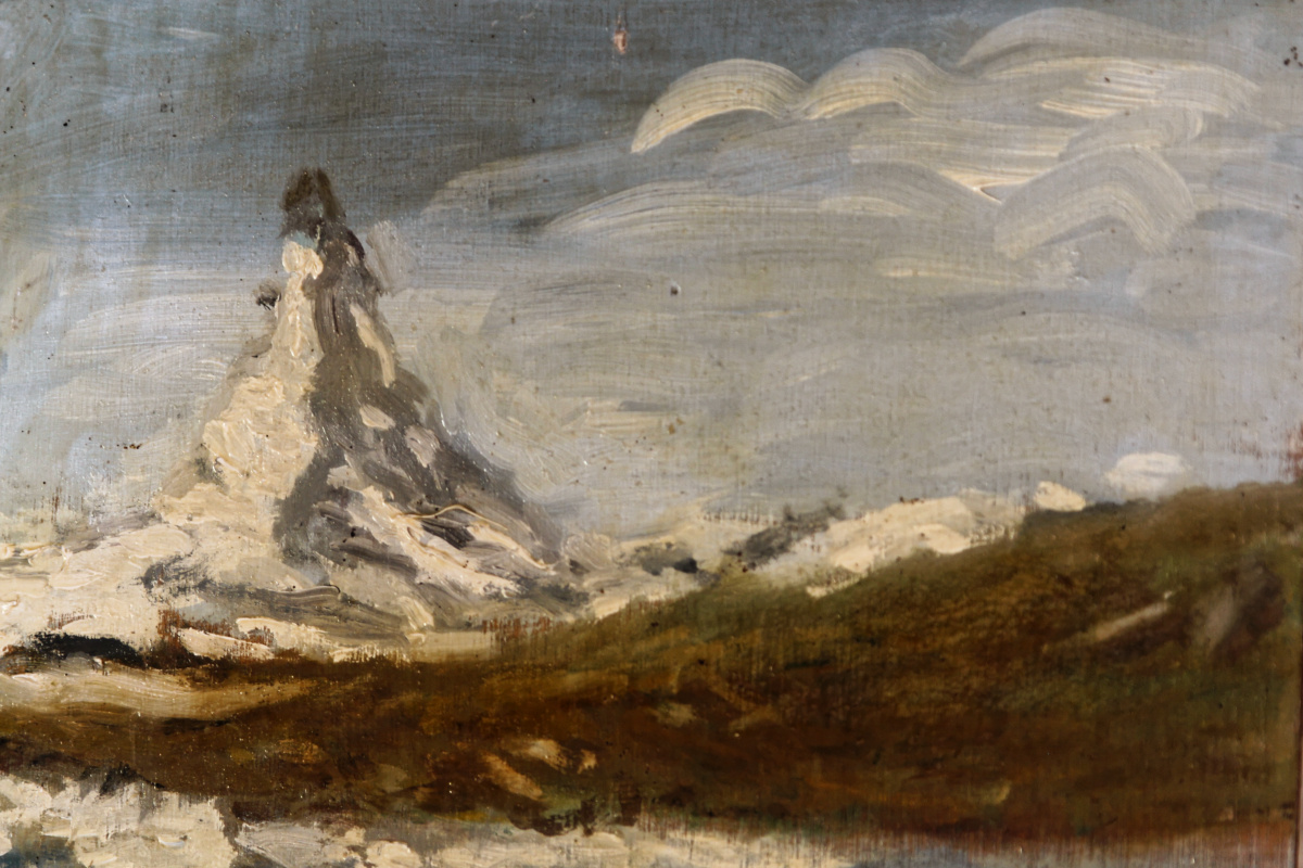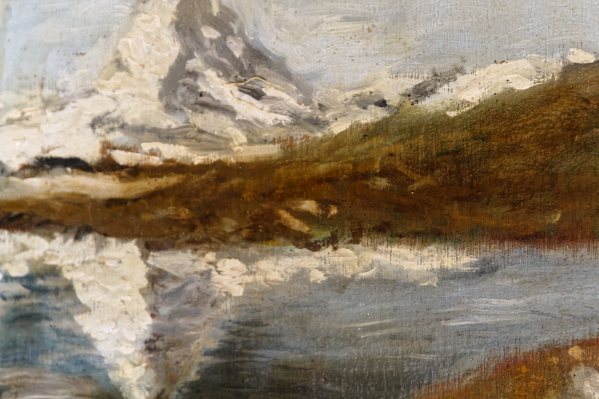 Huile sur panneau – vue du Cervin depuis le Lac du Riffel