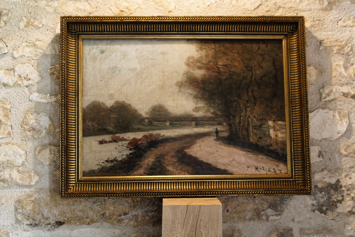 Huile sur toile Paul Louis Morizet, bord de rivière, XIXème siècle