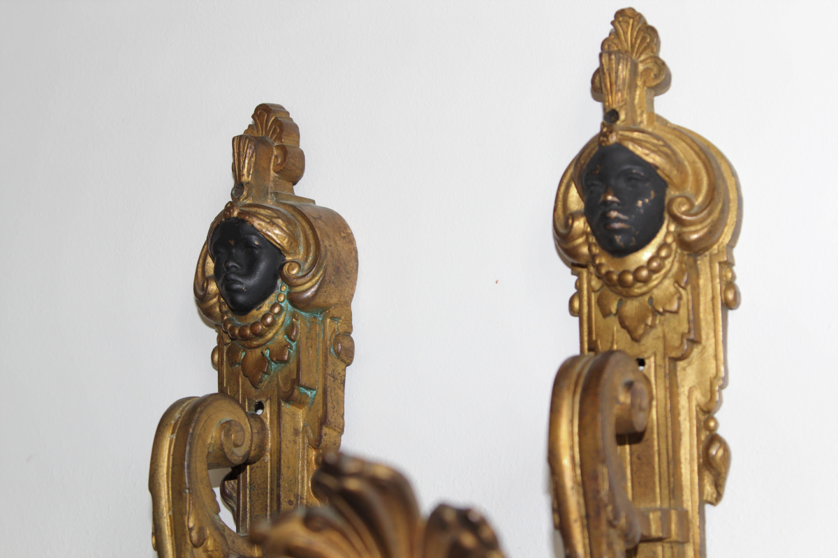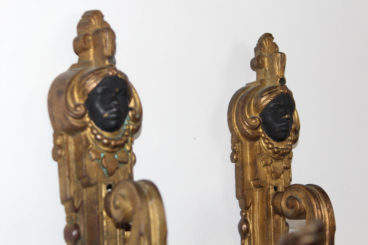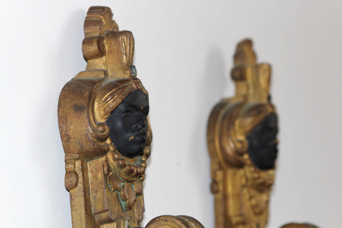 VENDU – Importante paire d’embrases de rideaux en bronze, style Louis XVI avec nubiens