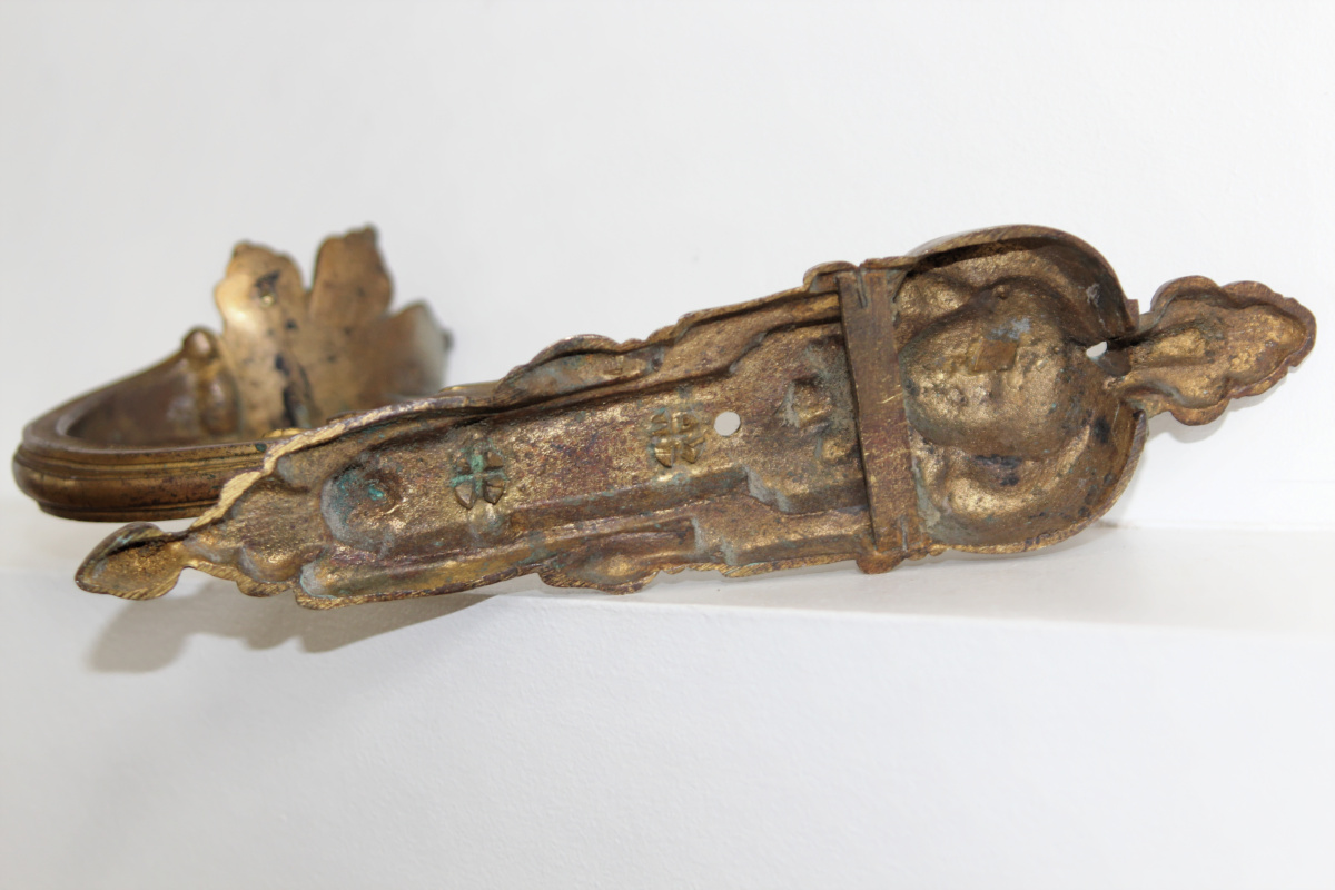 Traces sur patine, vert de gris, 2 anciens trous discrets, liés à leur utilisation antérieure en appliques