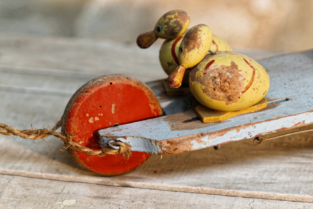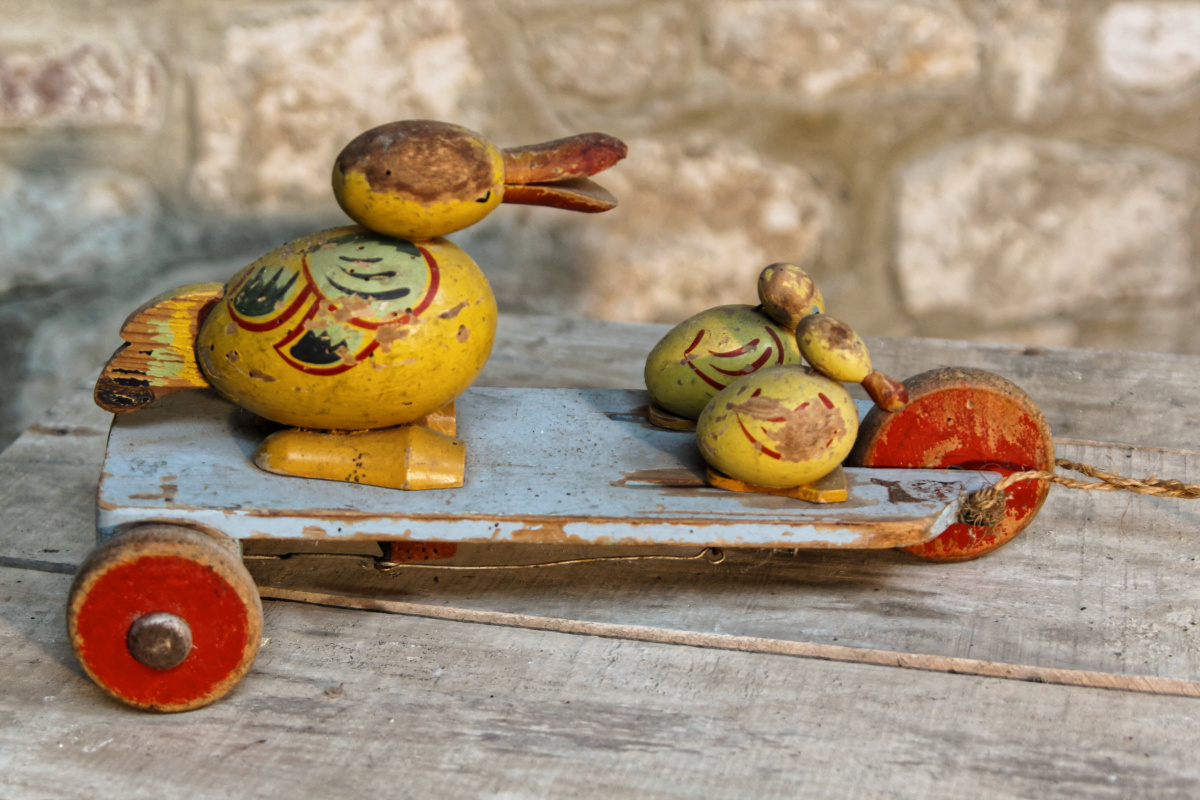 La famille canard – en bois à roulettes – jeu de plancher à tirer