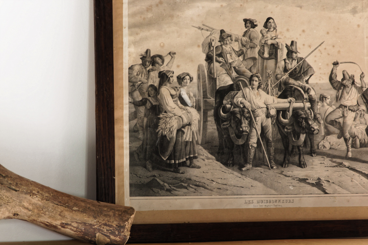 Paire de lithographies Lordereau Paris encadrées : Les Moissonneurs et Le retour de la fête