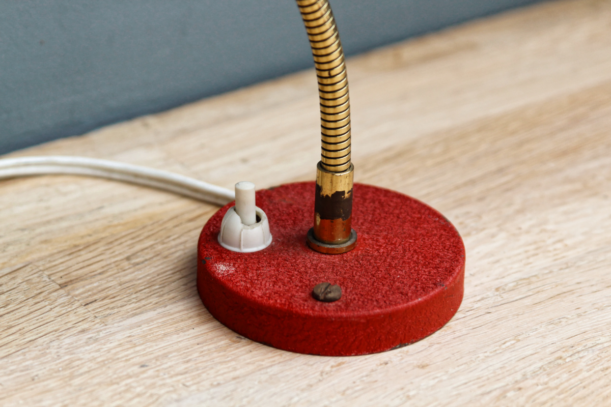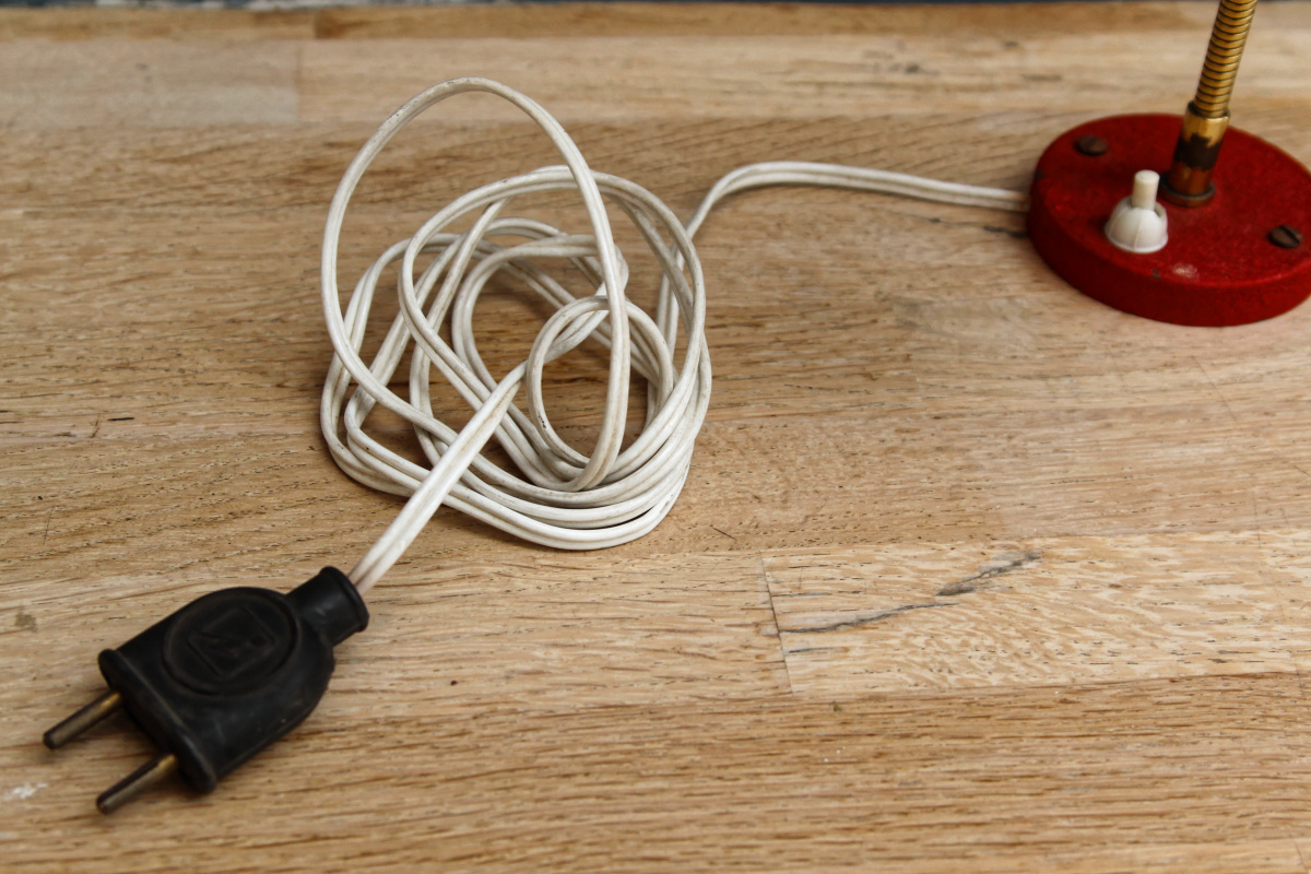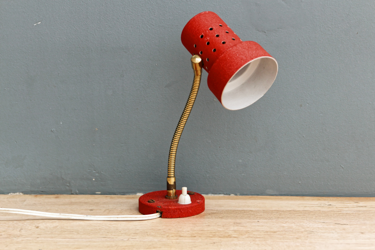 Une bien jolie petite lampe de chevet, dans la lignée des lampes cocottes, à la fois vintage et design. Ampoule à baïonnette, électrification d'époque fonctionnelle, bouton poussoir (un peu croqué mais tout à fait opérationnel), petites traces d'usage (voir photos), Beaucoup de charme !
