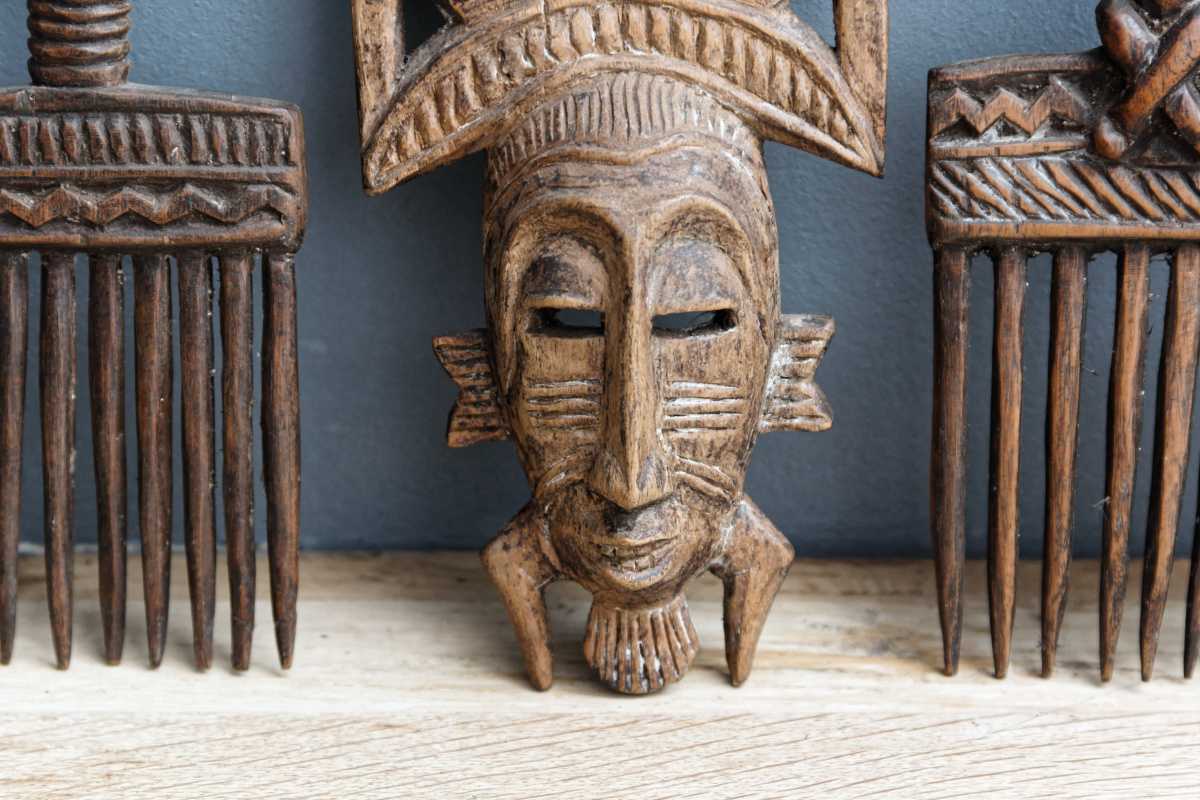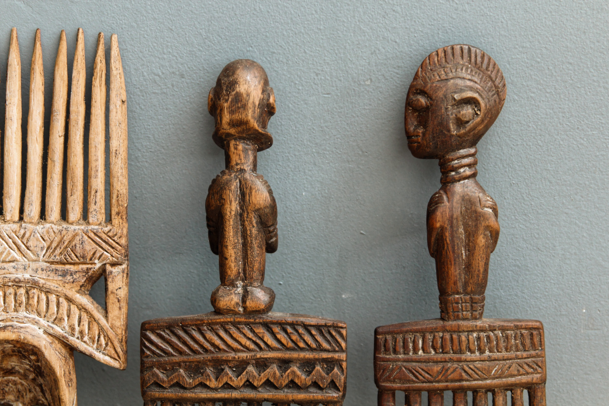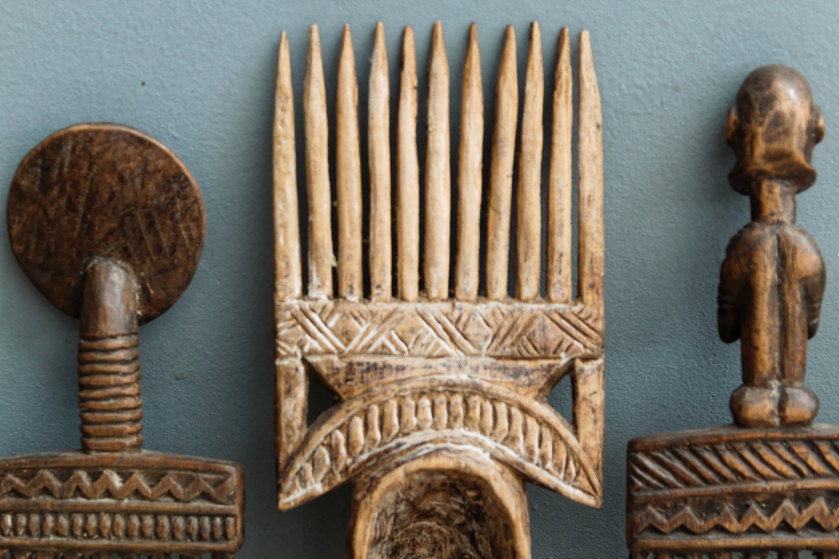 "Le peigne africain se présentait sous différentes formes et tailles, chacune témoignant de goûts personnels. Il était savamment décoré de sculptures ou incrusté de pierreries. Ces enrichissements, qui exigeaient beaucoup de patience et d'habileté, donnent une idée de l'importance qui était accordée à l'entretien et à l'embellissement du cheveu."