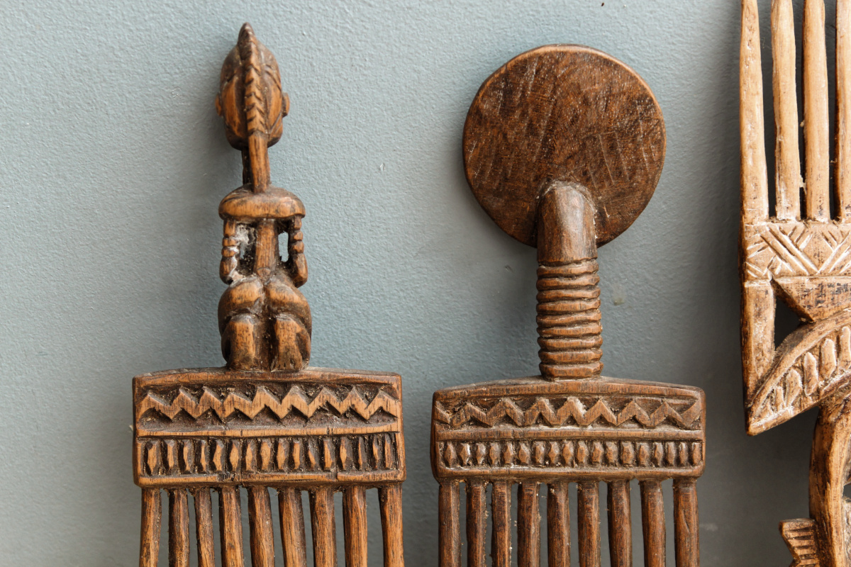 Très belle série de peignes africains, provenant de différentes ethnies. remarquable travail artisanal, touchant de détails, patiné par le temps. A accrocher au mur ou à mettre en valeur sur des socles individuels. un vrai coup de coeur !