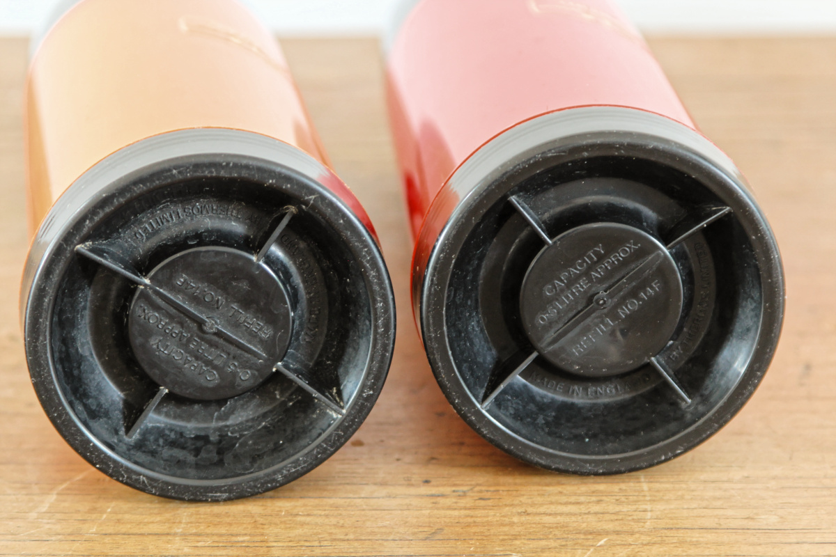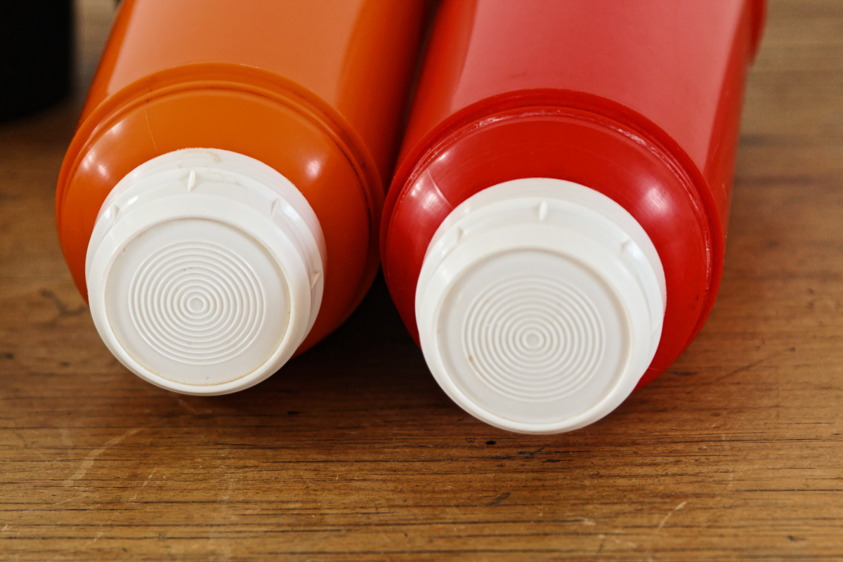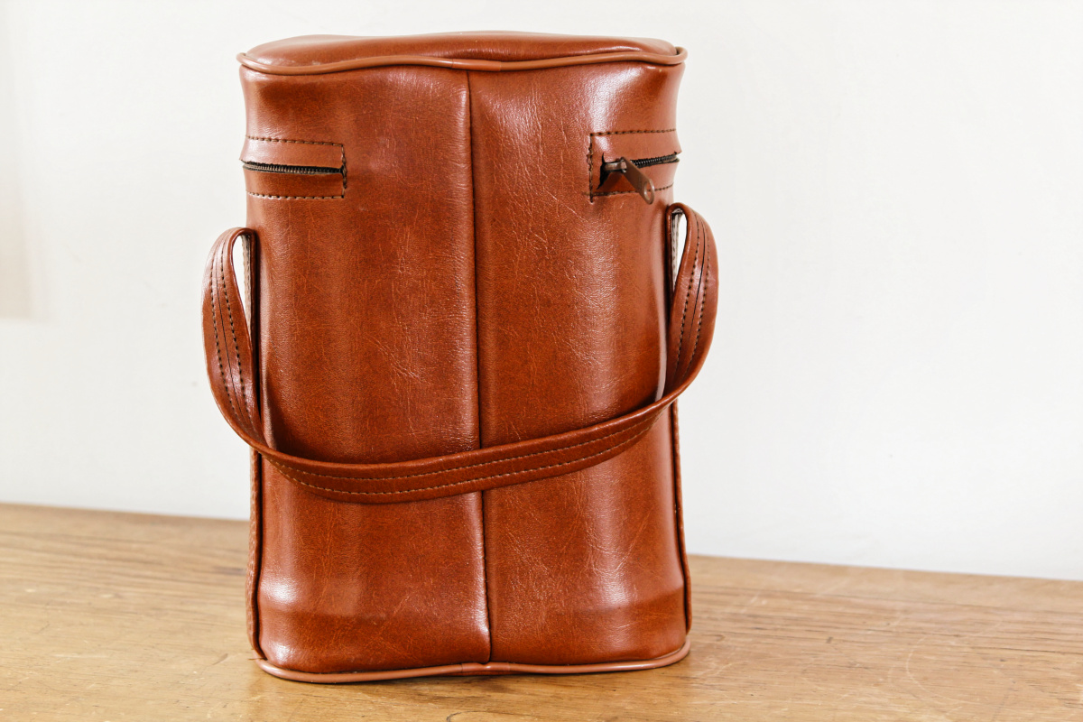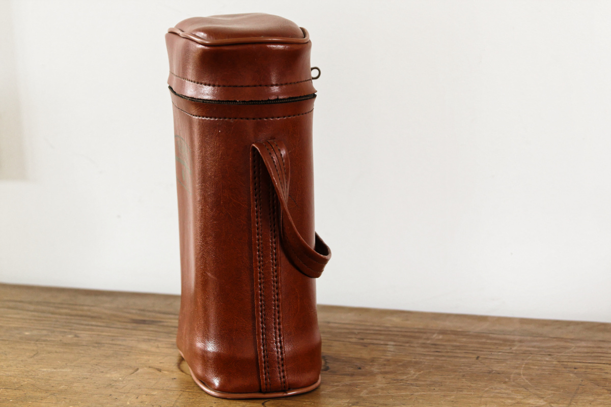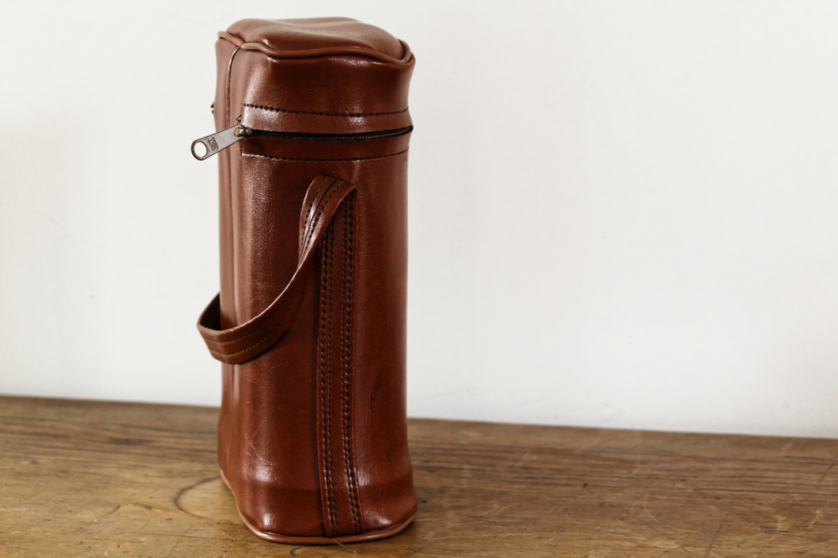 Une belle pochette en moleskine, contenant deux jolis thermos et leur quarts... Un appel à l'oisiveté, à la promenade, à la pêche. Un thermos pour les liquides chaud, un autre pour le froid. Le tout en bon état général. Tellement vintage.