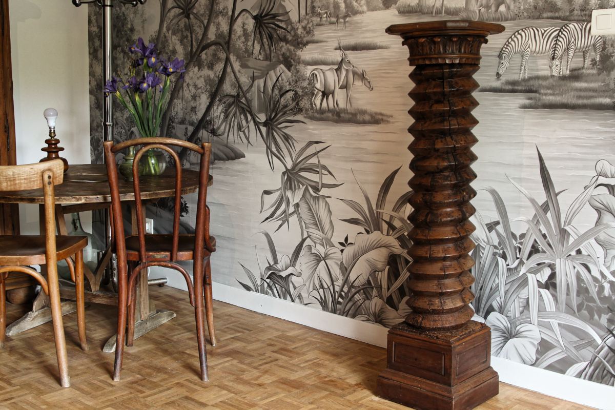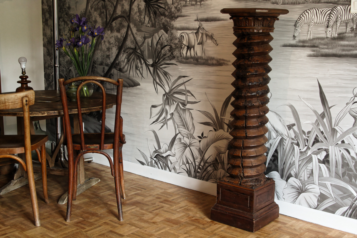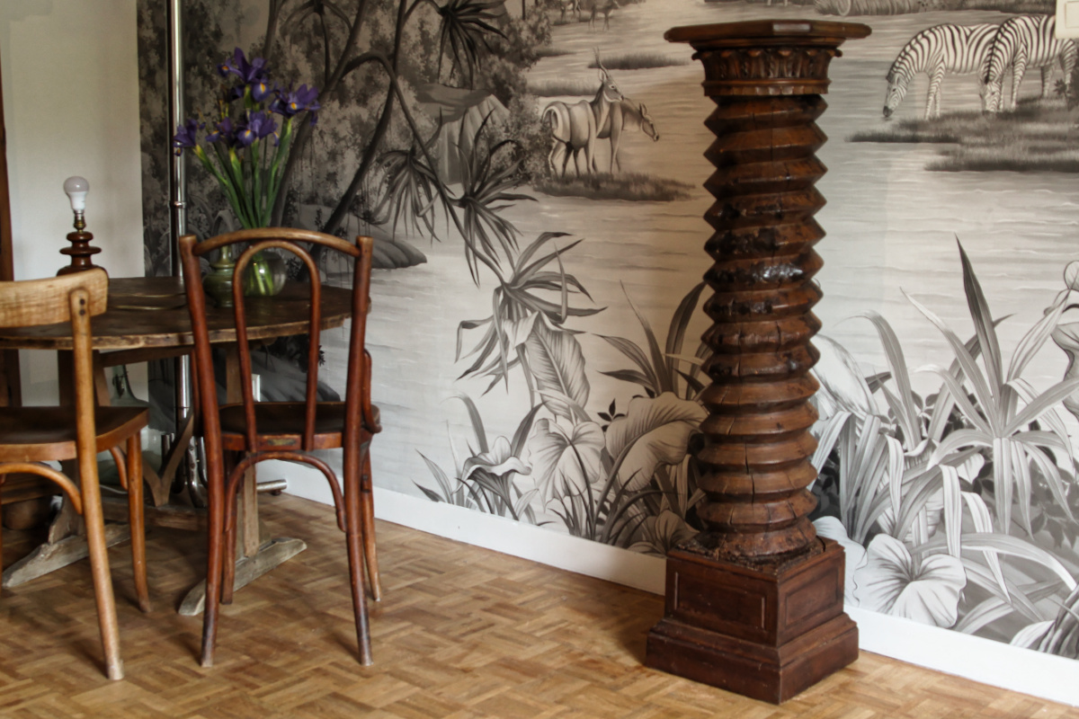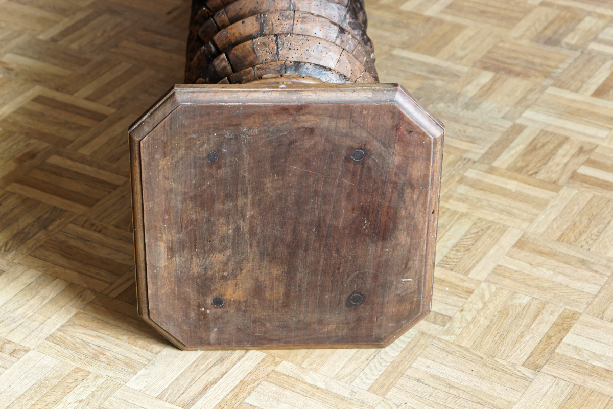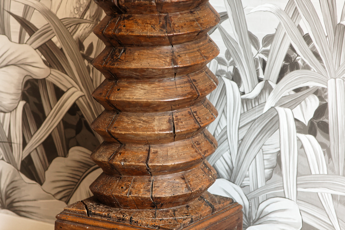 Splendide vis de pressoir en chêne, montée en sellette. La vis est du XVIIIème siècle, les socles supérieur et inférieur sont du début XXème. Le bois a été traité contre les insectes xylophages. Très belle patine du temps, riche chapiteau sculpté, excellente stabilité. Support idéal pour une importante composition florale, une sculpture...
